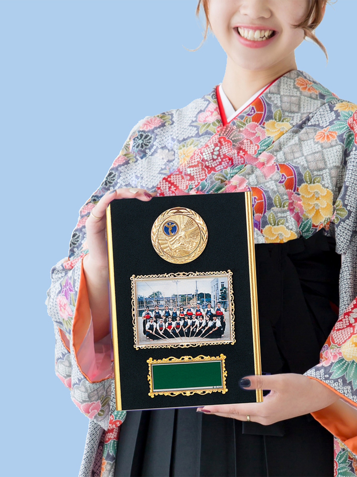 メンバーとの集合写真をはめ込む事もでき、個人名の彫刻も可能です。