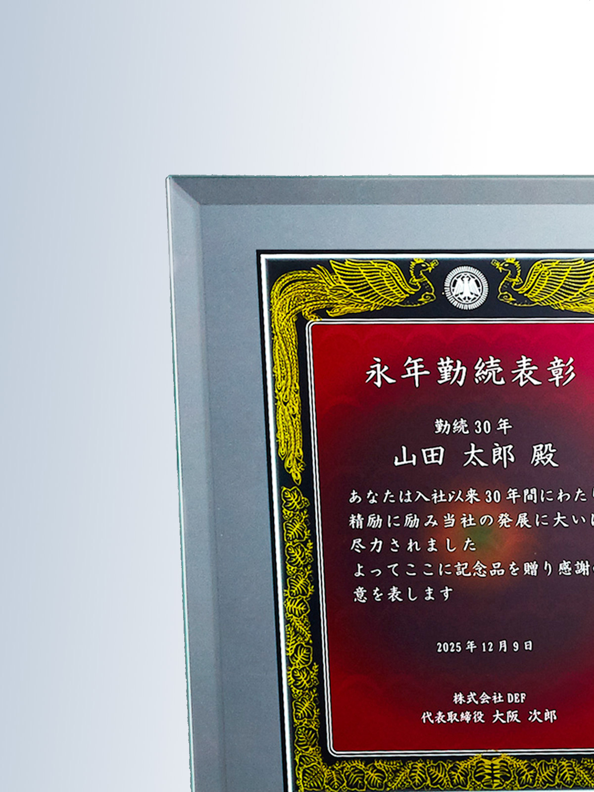 ガラス表面にフルカラー印刷対応が可能です。背景をグラデーション仕様にする事もでき、華やかな仕上がりにもできます。